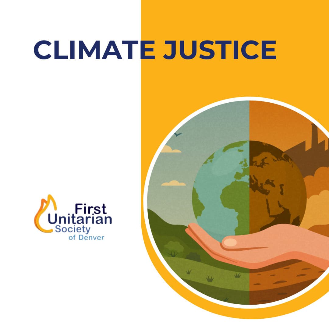 This week, we celebrate Martin Luther King, Jr. Sunday. In Join us for our “No Justice, No Peace” service with our Ministerial Resident, Michael DeSantis. This week, we celebrate Martin Luther King, Jr. Sunday. In particular, we will reflect on what Dr. King had to say about our monthly spiritual theme of Peace. What is the relationship between peace and justice? And how might Dr. King’s legacy be calling us to respond to these turbulent (and distinctly un-peaceful) times that we find ourselves living in? We warmly invite you to join us in person or, if you prefer, participate online. We look forward to seeing you there! Our service streams to Youtube and Zoom (meeting ID is 466-677-668 and the password is 454623). Join us for coffee in the Community Room after the service. First Unitarian Society of Denver 1400 N. Lafayette St 18jan12:00 pm1:00 pmClimate Justice Book Talk Join us for our Climate Justice Book Talk
